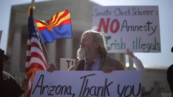 Protestor in support of Arizona outside of the Supreme Court during oral arguments | Credit: The New York Times