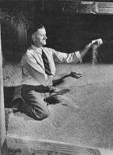 Roscoe Filburn with wheat at his farm around the time the Supreme Court ruled against him | Credit: Mary Lou Filburn/NYT
